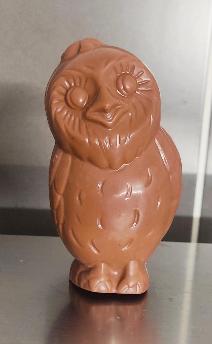 Chouette en chocolat au lait 40%.pur beurre de cacao.