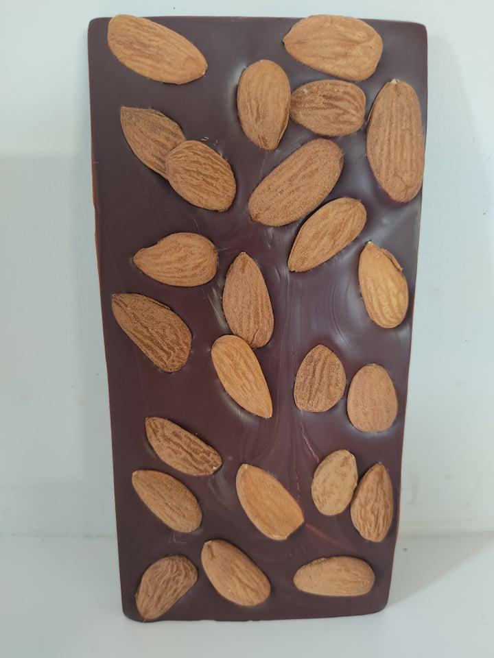 Tablette de chocolat noir 70% biologique et équitable, amande d'Espagne. pur beurre de cacao.