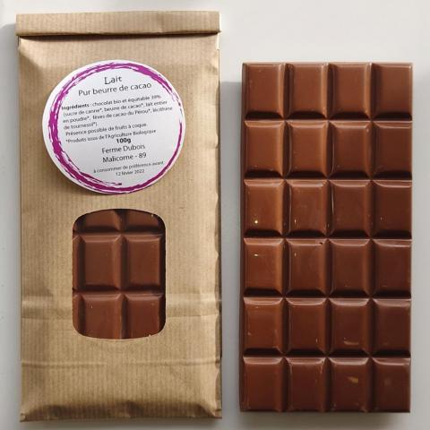 Tablette de chocolat au lait40 %.pur beurre de cacao.