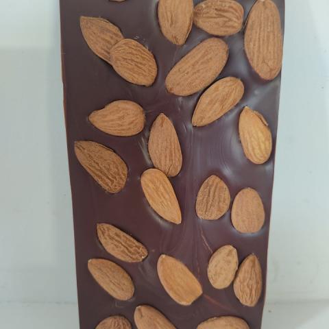 Tablette de chocolat noir 70% biologique et équitable, amande d'Espagne. pur beurre de cacao.